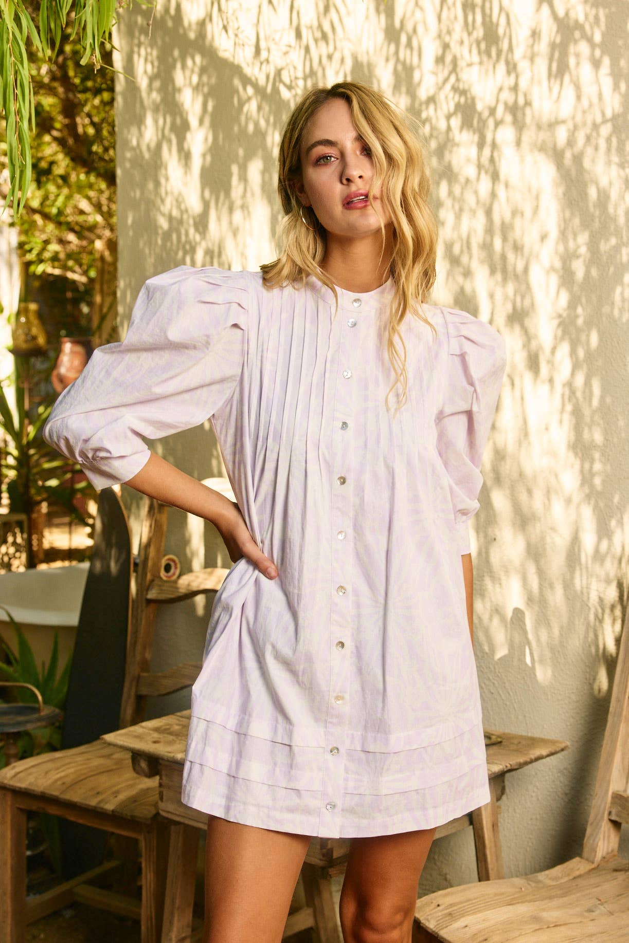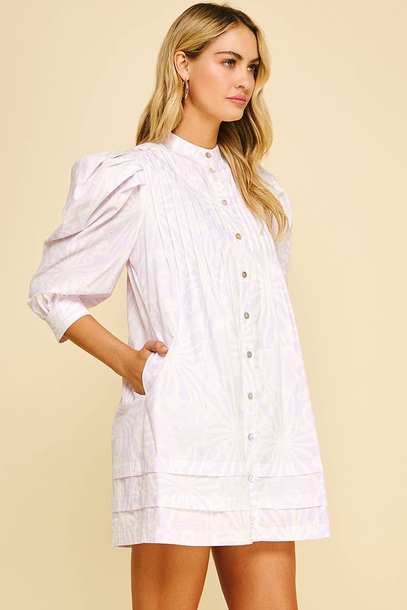 FLORAL PRINT PINTUCK MINI DRESS - 5720D