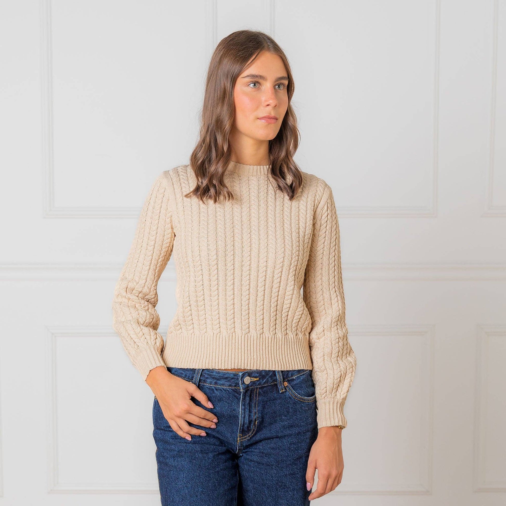 Crafted from our soft organic cotton, our cable knit pullover sweater is a fantastic addition to your fall wardrobe. Features a beautiful allover cable design and gently puffed peasant sleeves. Sure to keep you warm when temperatures start to drop, this is truly a fall and winter essential that goes with it all.